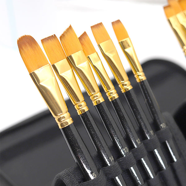 - Multiple Brush Shapes: This set includes seven brush shapes—Liner, Fan, Round, Glaze, Flat,
