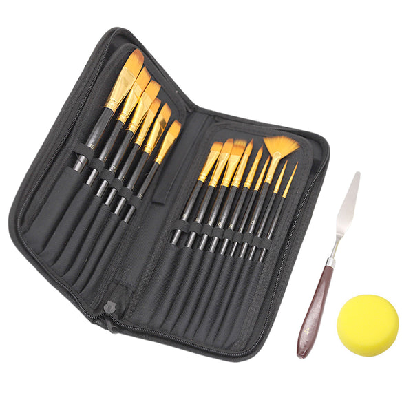Versatile 15-piece brush set with pop-up storage brush stand, ideal for watercolour, acrylic, and oil painting.