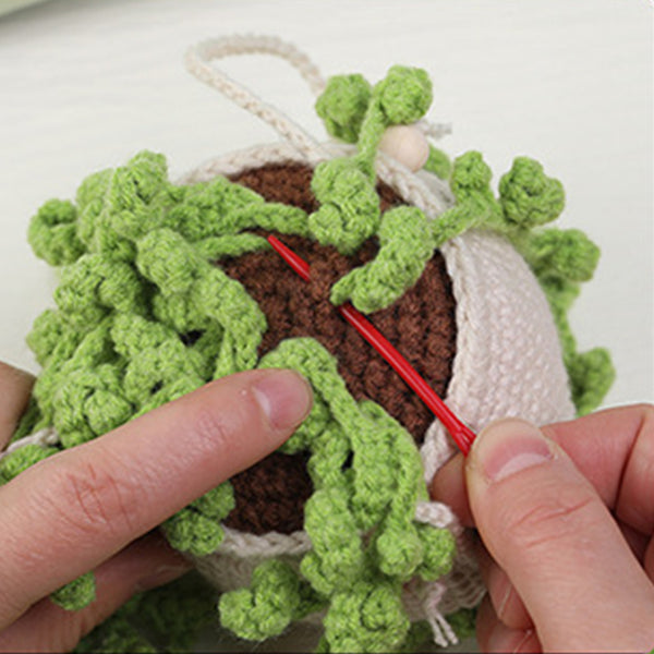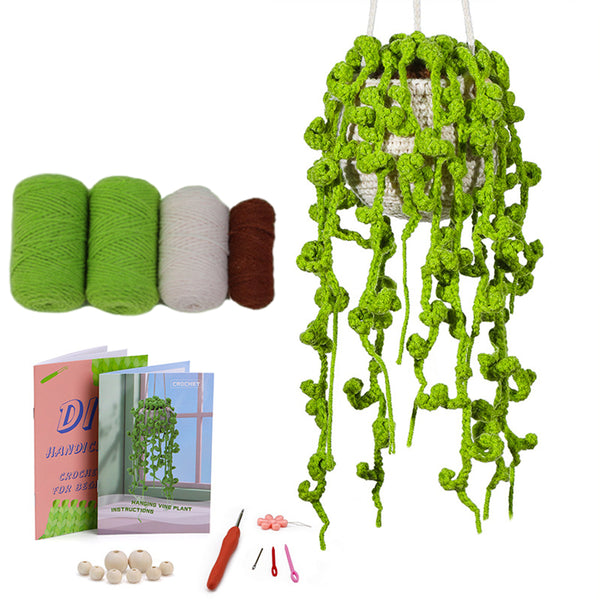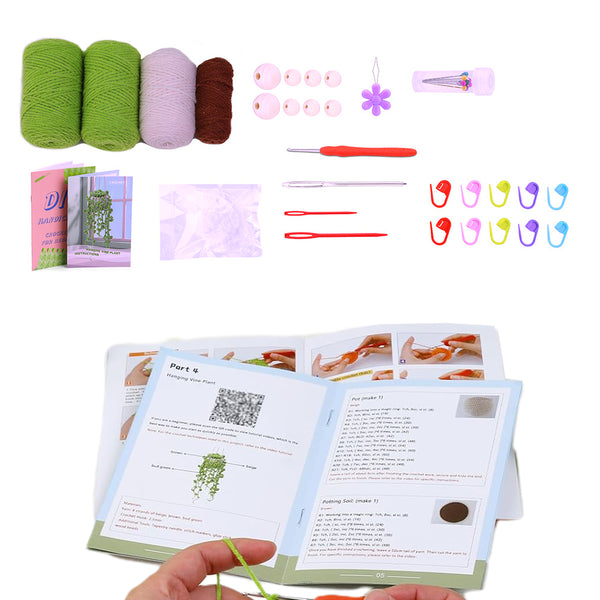 The included instructions offer a clear and detailed guide for creating hanging potted plants using this looped stitching kit.