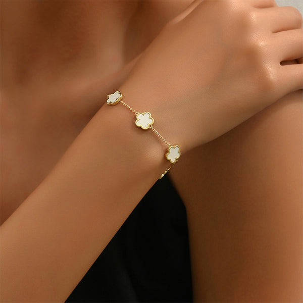 Clover bracelet featuring a delicate design, symbolizing luck, prosperity, and protection.