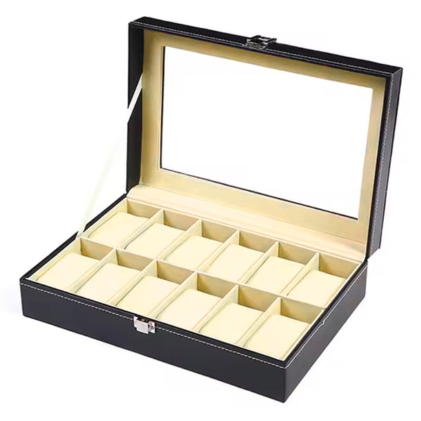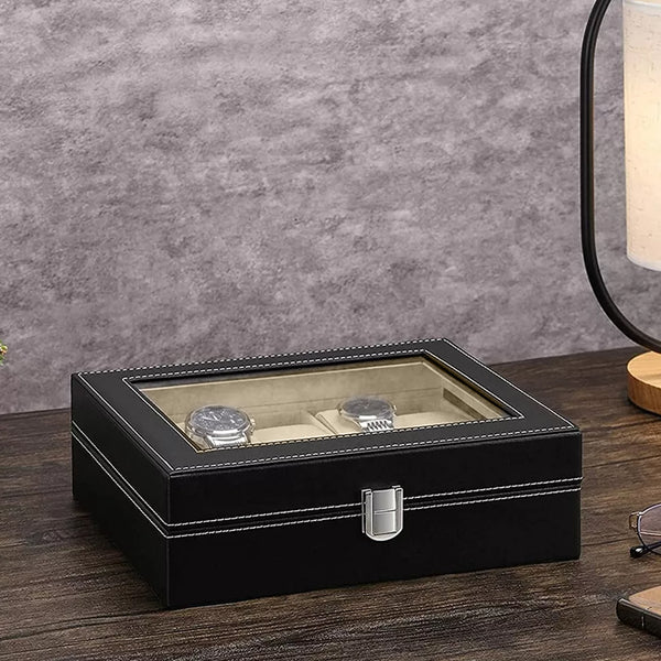 - Features a glass lid to keep your watches dust-free, allowing you to view the contents without opening the box.