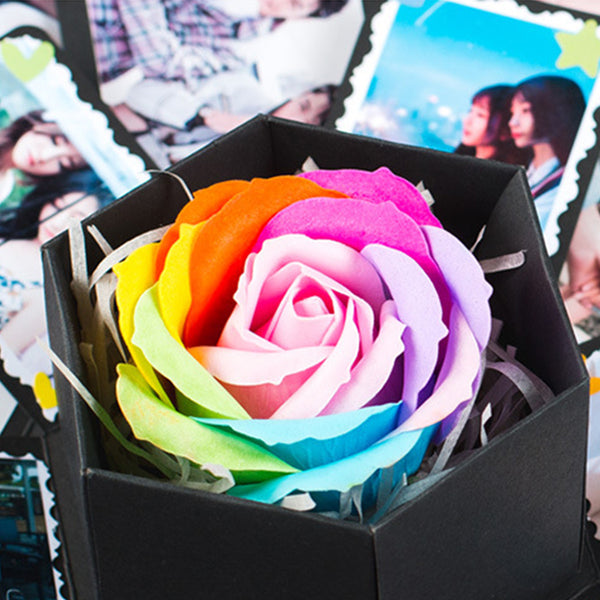 - DIY by yourself. You can DIY this explosion gift box with color pens, photos and stickers.