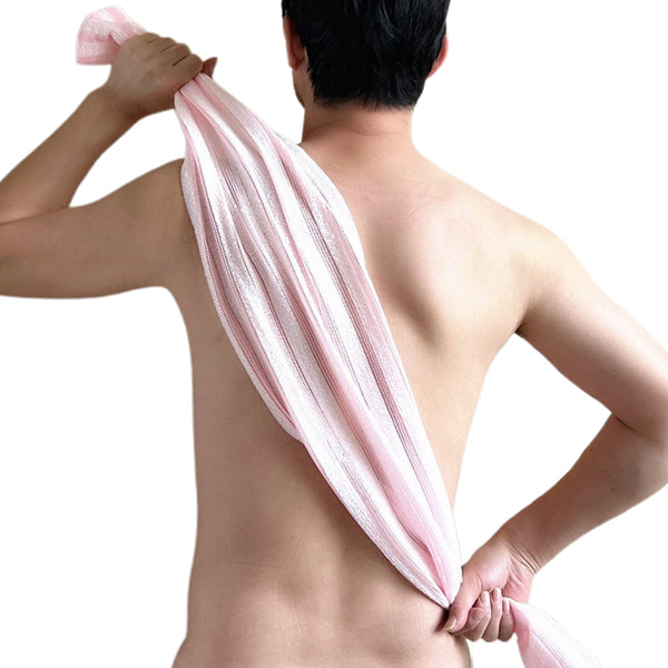 Ultra-long exfoliating washcloth designed for easy back and full-body cleaning, creating rich foam for a refreshing and invigorating shower experience.