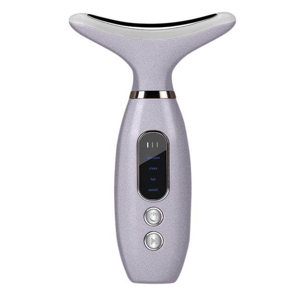 Designed to target the face and neck, this multifunctional device combines vibration, ion import, heat therapy, and LED light treatment to firm, smooth, and brighten your skin.