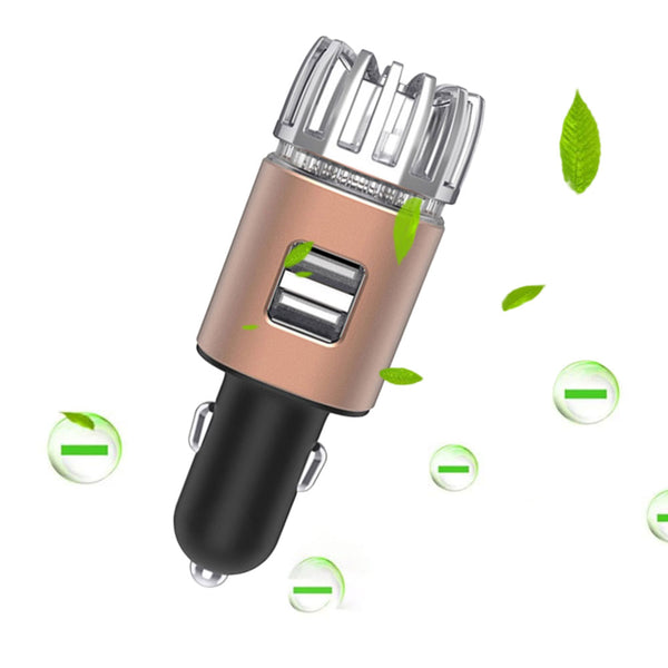 This car air purifier cleans the air by releasing negative ions, offers dual USB charging ports to ensure you enjoy fresh air and convenient device charging while driving.