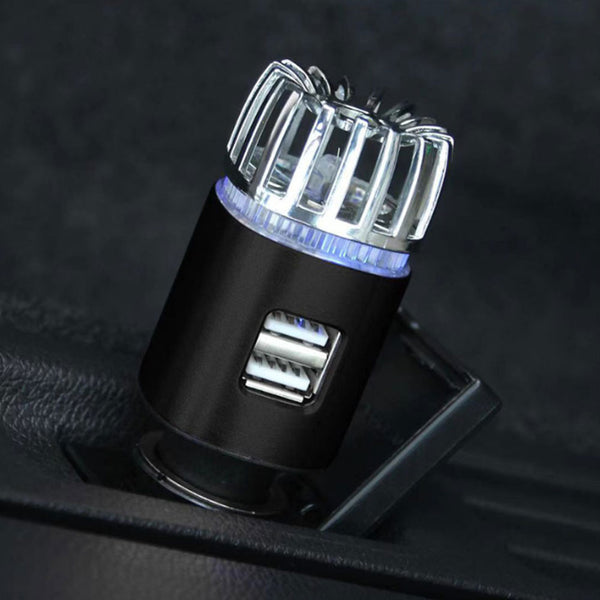 12V Car Air Purifier Car Air Freshener with Dual USB Charger Port Black