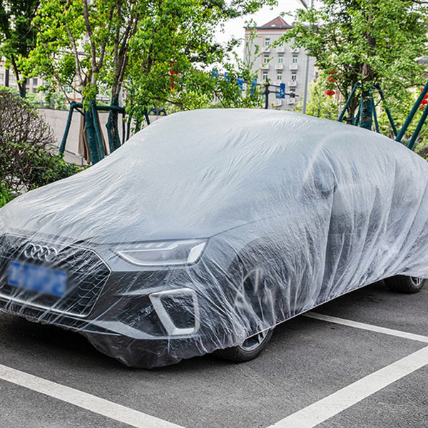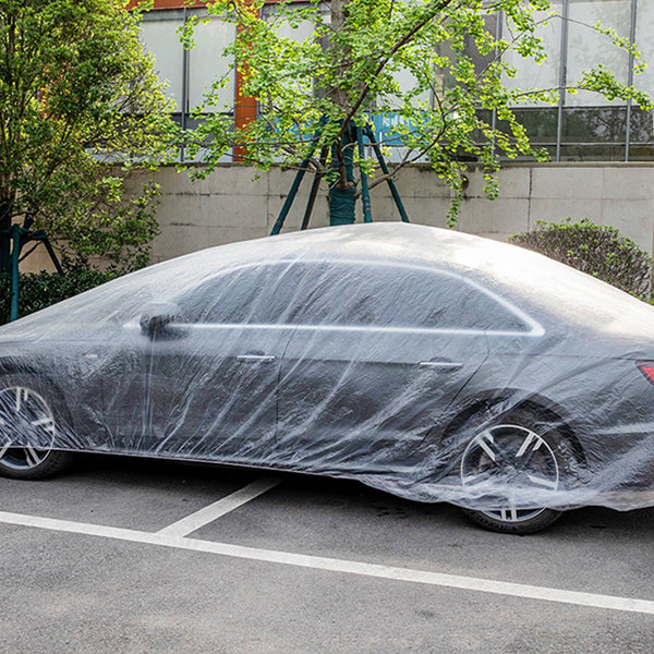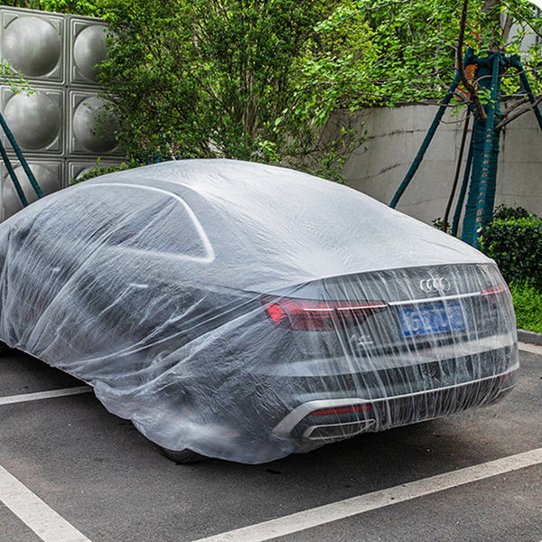 This disposable car cover provides effective protection for your vehicle, which fits most standard sedan, hatchbacks, SUVs and Jeeps.
