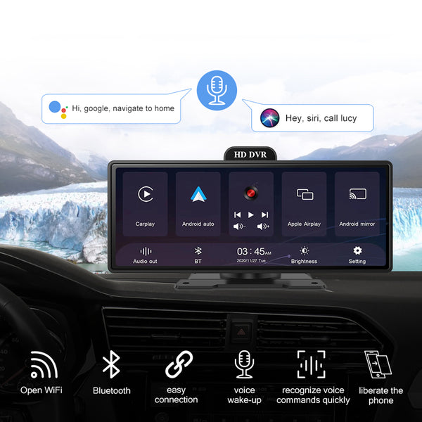 The front-facing 4K HD resolution ensuring you can capture every detail, this dual camera car play can access all functions on your mobile phone, including making calls, playing music, online navigation, voice control, etc., providing you with unlimited convenience.