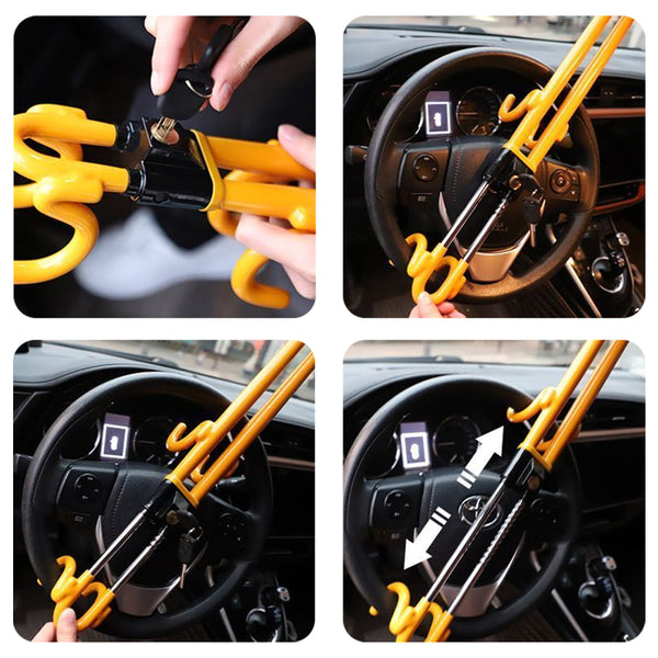 - Enhanced security with four locking hooks and twin bars for a firm grip on the steering wheel.