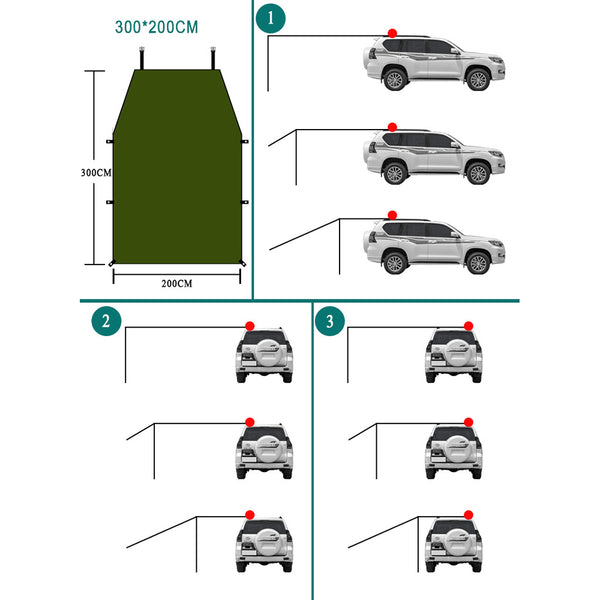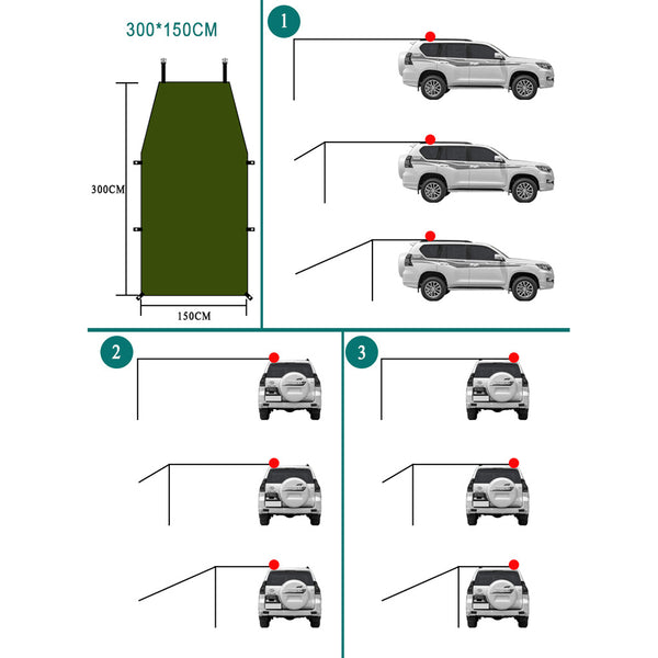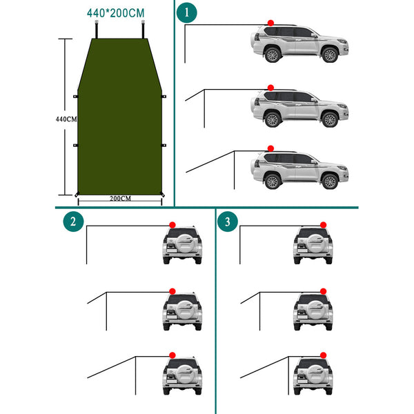 Portable car awning is suitable for almost all brand models, cars, SUVs, RVs, minivans, trucks, MPVs, hatchbacks and cars.