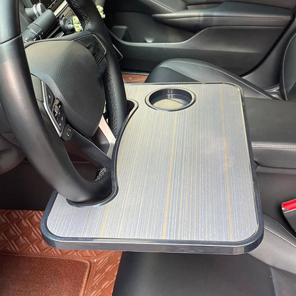 - With its ergonomic design, the steering wheel desk provides a comfortable and convenient working experience. It allows you to work or eat in the car without any hassle.