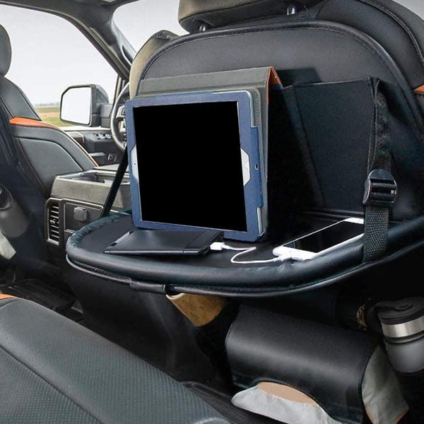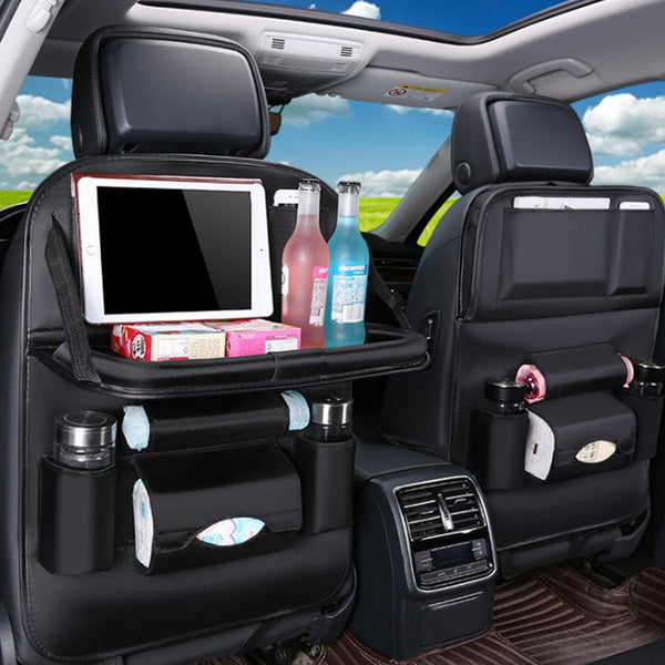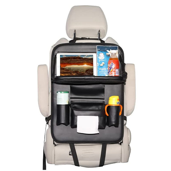 PU Leather Car Backseat Storage Organizer with Foldable Dining Table Tray