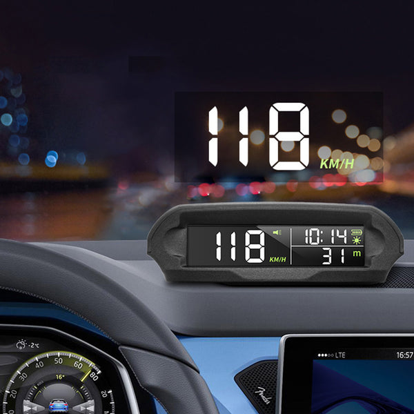 This wireless car HUD head-up display combines solar power with GPS technology to provide accurate real-time speed, time, altitude, and other essential data. Designed for universal compatibility, it’s a sleek and functional device.