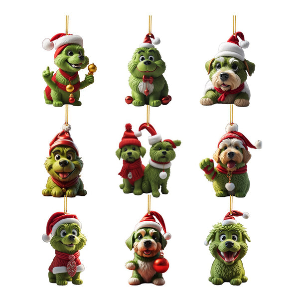 - This set includes 9 pieces of green dog ornaments in different patterns.