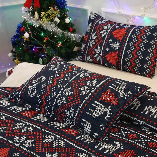 The Christmas pattern quilt duvet cover set features festive designs that bring holiday cheer to your bedroom, crafted from soft, breathable fabric for a cozy and stylish winter retreat.