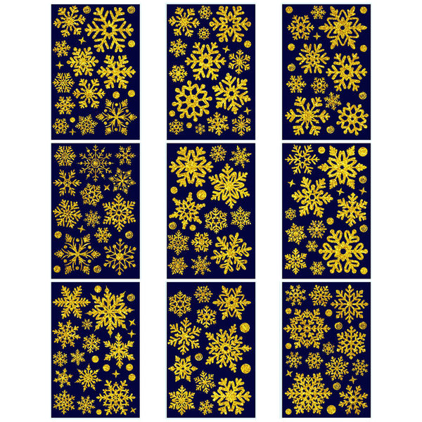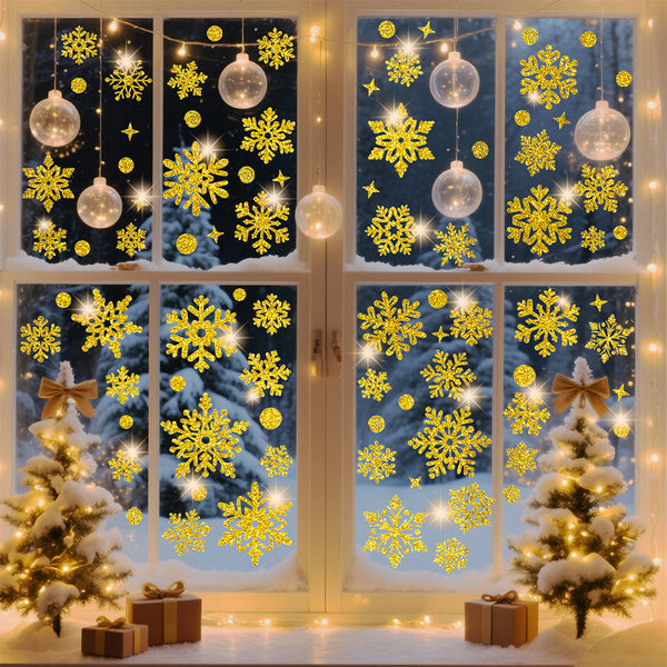 Decorate windows and glass surfaces with festive gold and silver snowflake clings that are reusable and easy to apply.