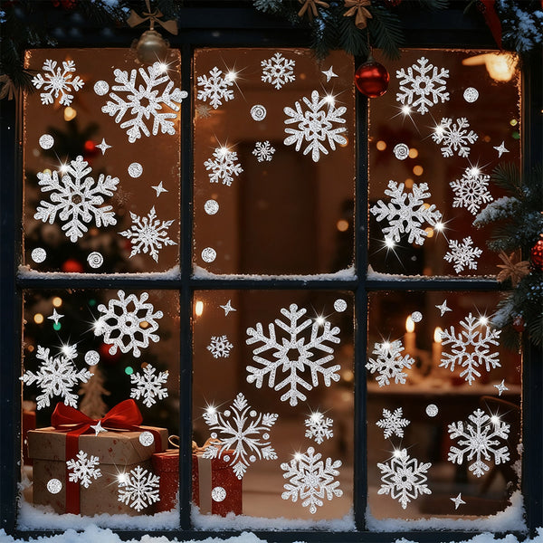 Decorate windows and glass surfaces with festive gold and silver snowflake clings that are reusable and easy to apply.