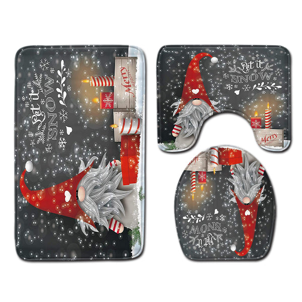 3Pcs Set Christmas Non-Slip Bathroom Floor Mat Toilet Lid Cover Toilet Mat Bathroom Decor Style 4