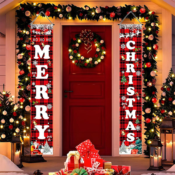 - Festive Door Banner: Features classic Christmas color scheme and greetings - "Merry" on left panel and "Christmas" on right panel, instantly creating strong holiday atmosphere and making your home the neighborhood's most beautiful scenery.