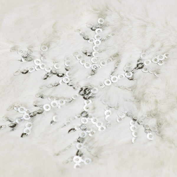 • Its sequin design is accented with snowflake appliques for a festive touch.