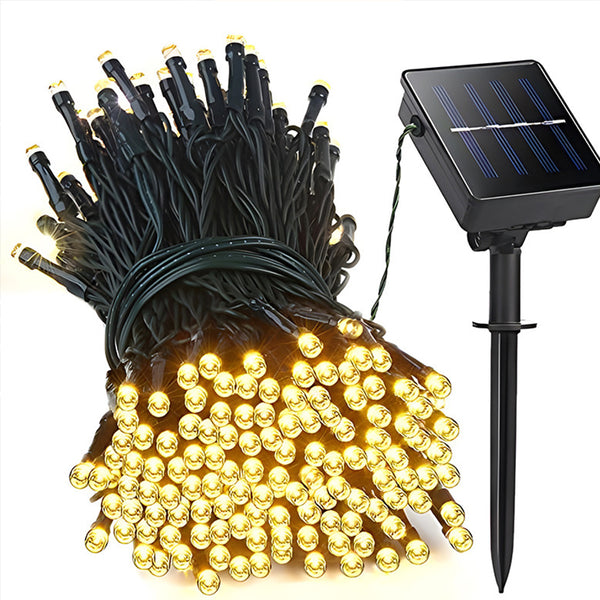 Eco-friendly solar-powered LED fairy lights with multiple lighting modes, perfect for brightening outdoor spaces and creating festive atmospheres.