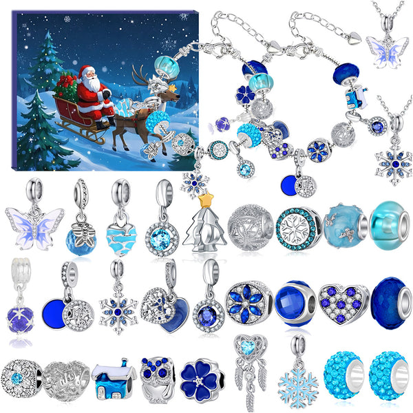 Unwrap the holiday magic with this festive 31-grid blue Christmas blind box, a creative DIY jewelry advent calendar designed for fun and surprise.