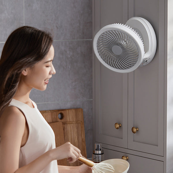 - With hooks design suitable for smooth hard surfaces, can be used as a wall mount fan or desktop fan