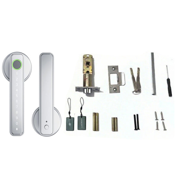 5-in-1 Smart Fingerprint Door Lock with IC Cards Keys and Door Knob Silver