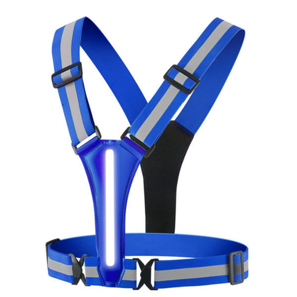 Adjustable LED Reflective Vest Rechargeable Running Gear with Night Light Blue