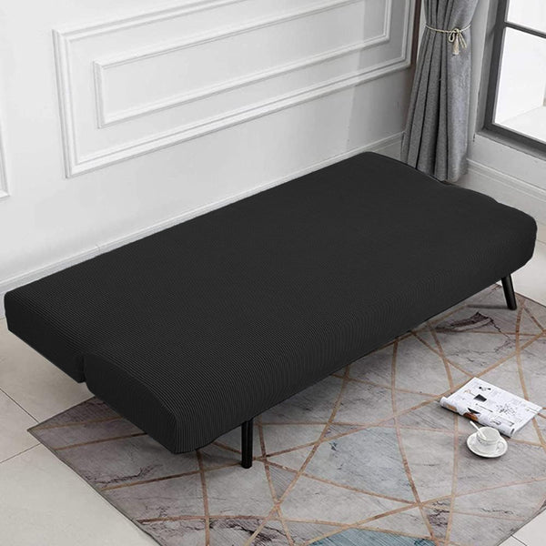 Stretch Armless Cover Sofa Bed Slipcover Protector Elastic Futon Protector Black