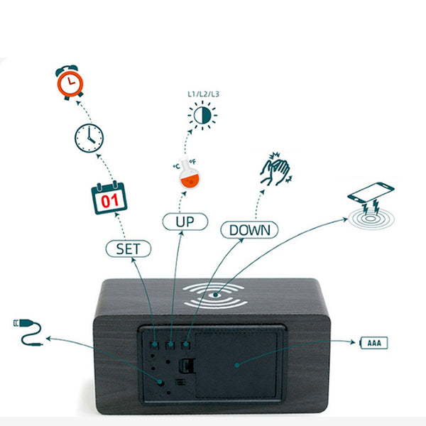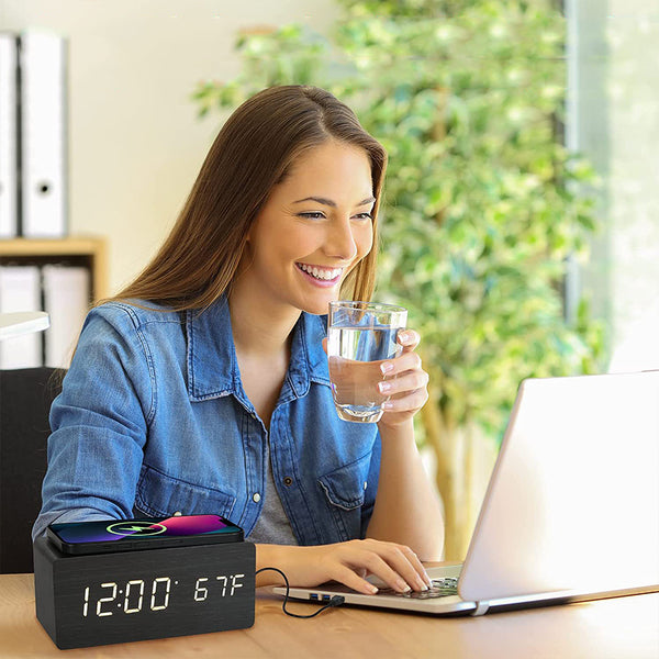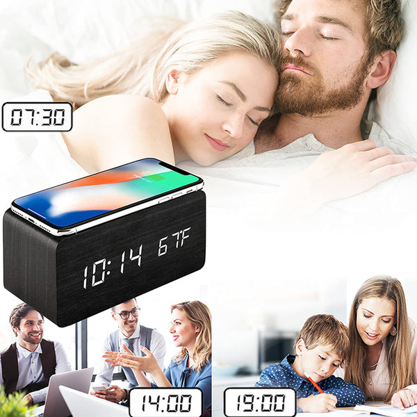 It combines alarm clock, wireless charger - all in one, ultra-compact design fits easily on any table, bedroom or bedside for decor.