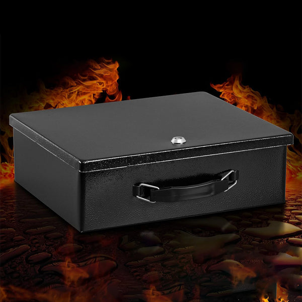 Fireproof Document Box with Key Lock Secure Lock Boxes for Documents Jewelry Cash Black