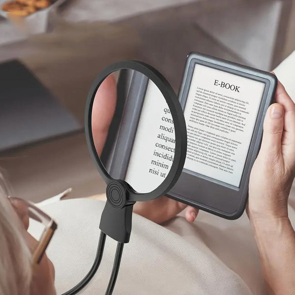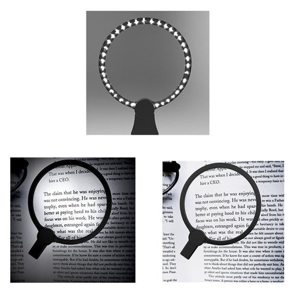 The illuminated magnifier with optical lens and standing neck ring is helpful for the elderly and low vision for reading!
