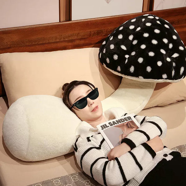 The mushroom shaped body pillow makes hugging and sleeping more comfortable!