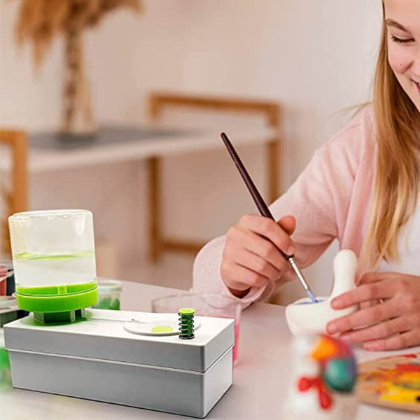 Paintbrush rinser has a new water circulation design, easy to replace dirty water with clean water just by pressing a button, allows you to focus more on painting.