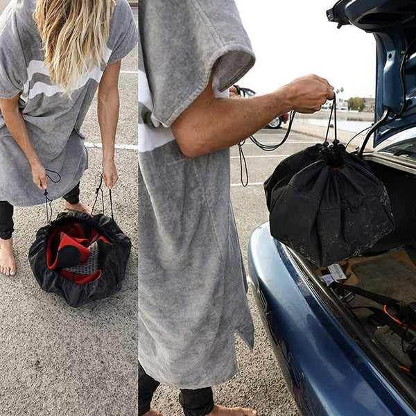 A convenient changing mat and carry dry bag with a drawstring, perfect for easily changing out of your wetsuit and keeping gear dry.