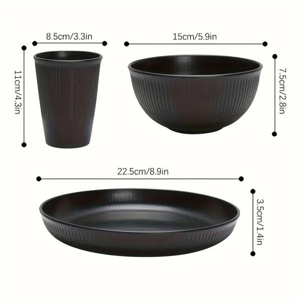 - The wheat straw dinnerware set includes 6 dinner plates, 6 cereal bowls, 6 drinking cups.