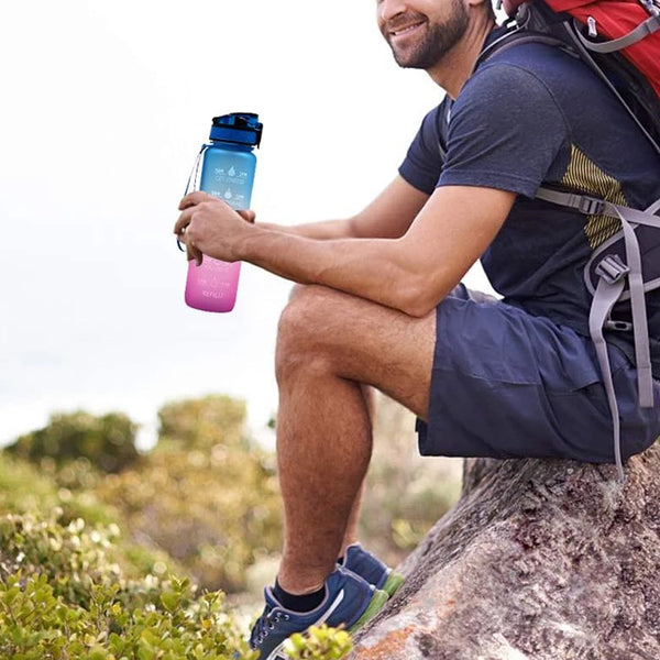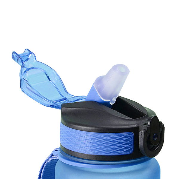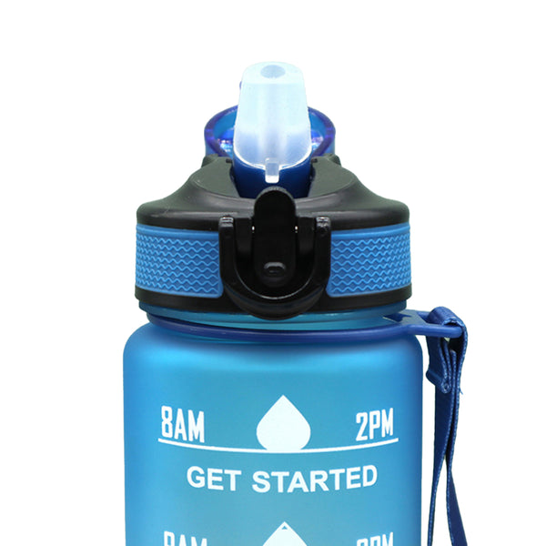 1L Water Bottle Motivational Drink Flask with Time Markings Sport Gym-Blue