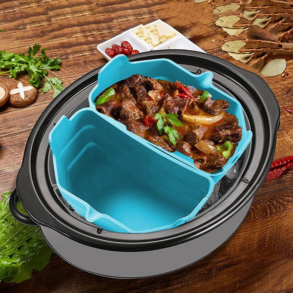 The slow cooker liner is easy to clean and easy to use, and the 2-in-1 design keeps your food prepared separately.