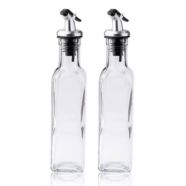 These glass dispenser designed for easy and precise pouring of olive oil, vinegar, or other kitchen essentials.