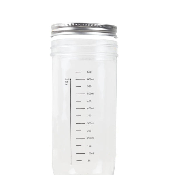 - Includes a 24oz glass sourdough jar, 1 silicone scraper, 1 breathable cloth cover, 1 metal lid, 1 thermometer band and 1 feeding mark band.