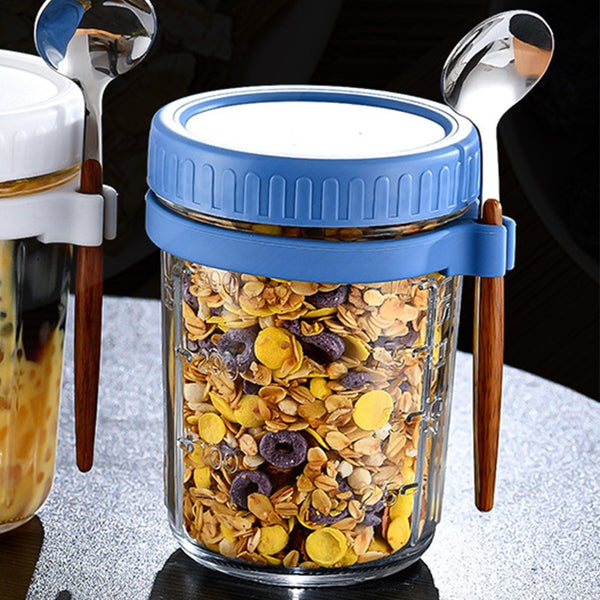 Perfect as a breakfast glass, this glass comes with a lid and a spoon, and the bottle features 2 kinds of capacity scales for different people to identify.