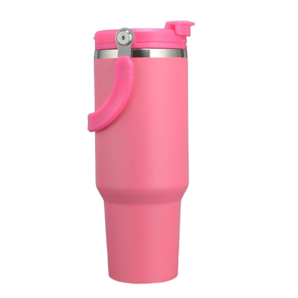The 30oz flip straw stainless steel tumbler features vacuum insulation to keep drinks at the perfect temperature, with a convenient flip straw for easy sipping on the go.