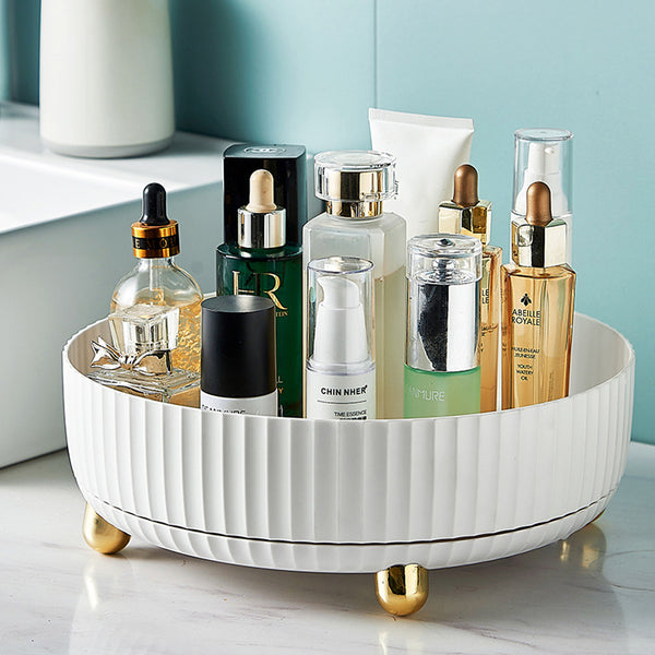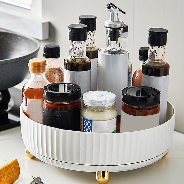 360-Degree Rotating Seasoning Organizer Spice Snack Cosmetic Storage BoxTray Display Stand White