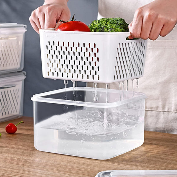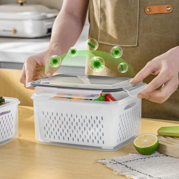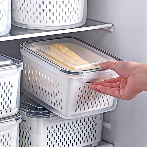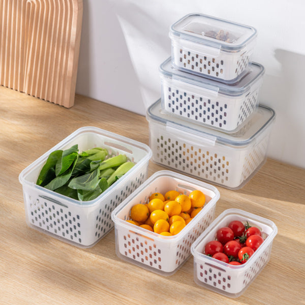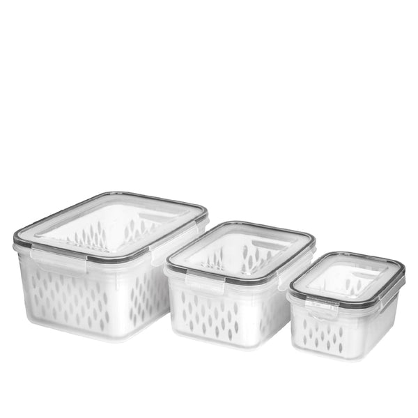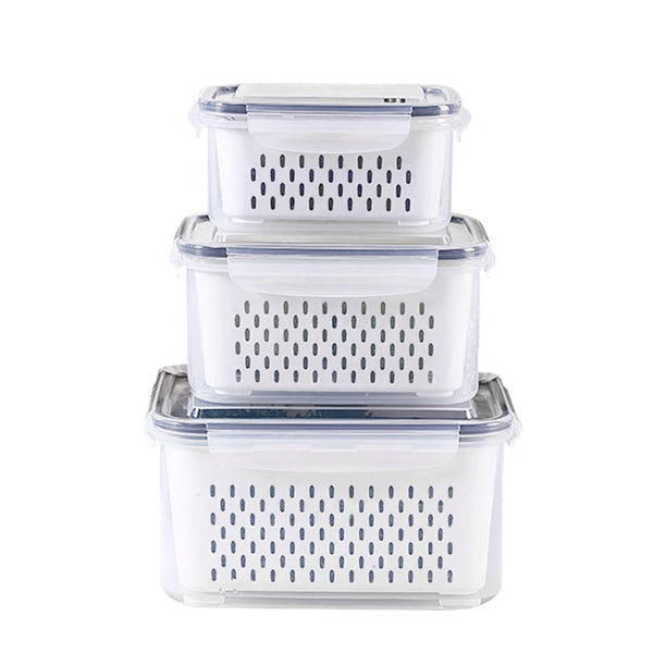 This 3-piece refrigerator food storage container set comes with a lid and strainer to provide you with convenient food preservation and filtering.