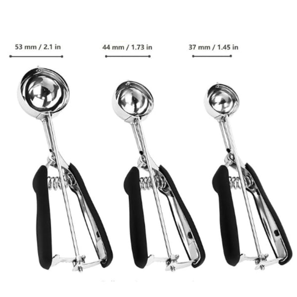- They can be used as cookie dough scoop, ice cream scoop, melon baller scoop, meatball scoop, cupcake scoop, muffin scoop, and so on.