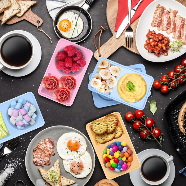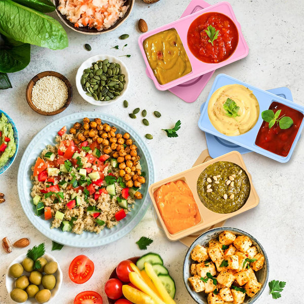 • 3 x Dual-Compartment Silicone Snack Container with Lid