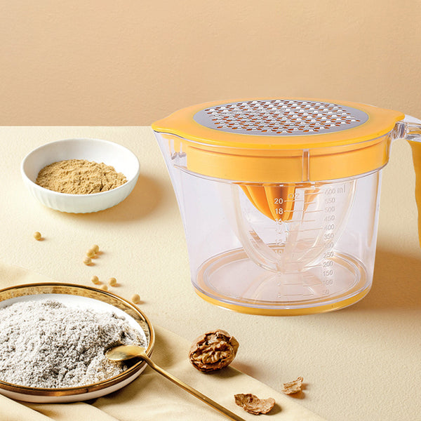 This 4-in-1 tool combines a juicer, grater, measuring cup and egg white separator to meet a variety of kitchen needs and is easy to operate.