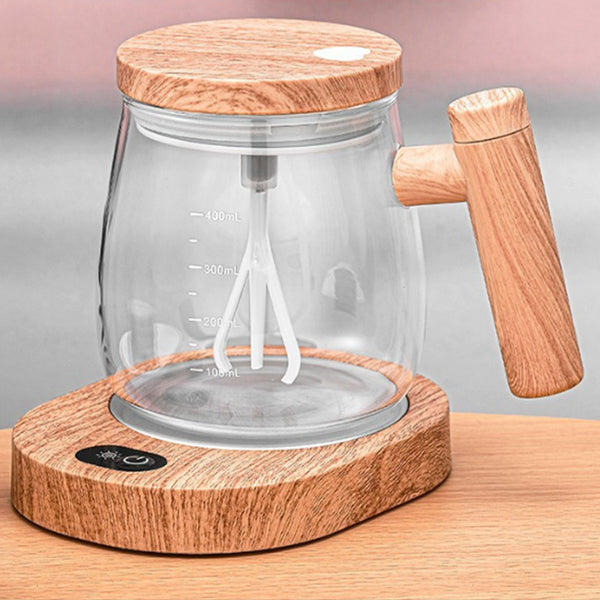 400ML Electric Self Stirring Mug with Heating Coaster Pad Mixing Cup Glass Coffee Mug