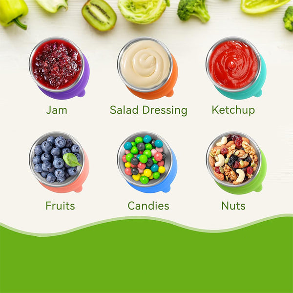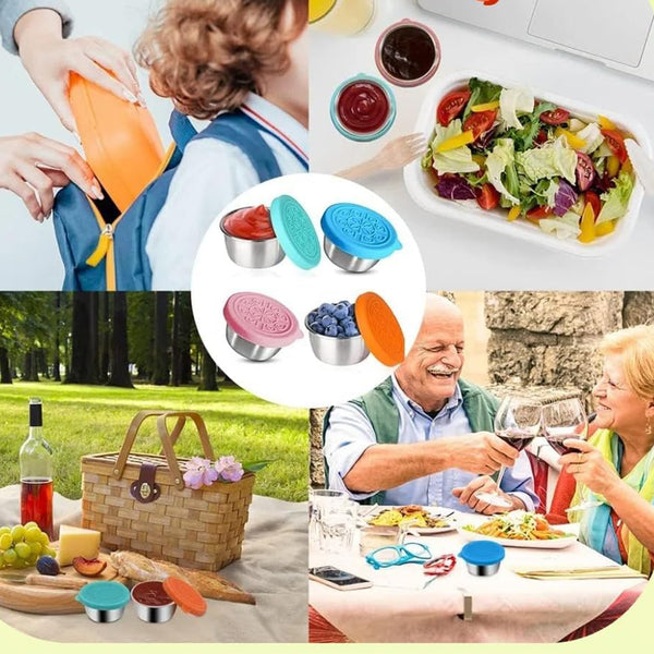 The 4pcs set mini sauce cups set make your meals healthier and more environmentally friendly, which is a must for home, school, work, travel, picnic, etc.